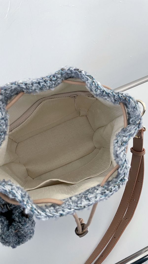 商品詳情 1+1冬版束口水桶包 線材使用亞麻+棉+壓克力線材鉤織 手感厚實,不會鬆垮垮 視覺上有冬天毛茸茸的感覺 但不容易掉毛,不會黏的身上都是唷 內裡是手工厚磅內裡,包包不易變形,裡面有一個開放式口袋+一個拉鍊口袋 附上同款耳機包,裝airpods非常適合,或是想放隨身的礦石也妥妥的 背帶是真皮可調式背帶 尺寸:高約23公分,袋口壓扁平量約25寬。