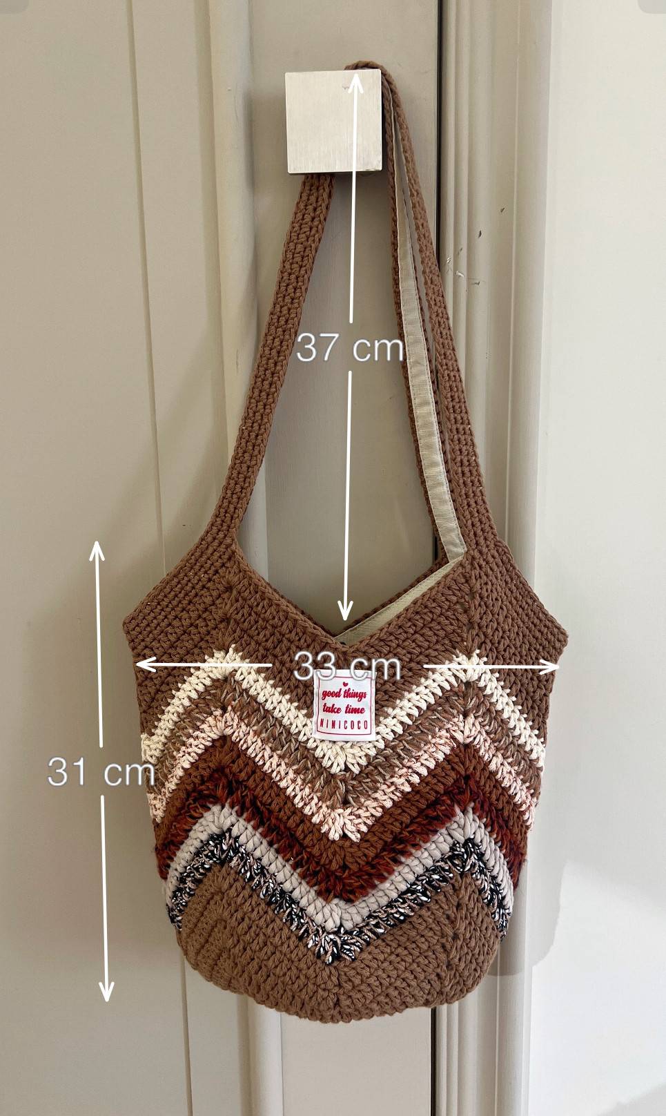 商品詳情 萬年不敗的氣球包型 用今年最流行最好搭的大地色系來做編織 一個是比較亮眼的焦糖色,另一個是比較低調氣質的奶咖色 都有加上厚磅內裡,揹起來會很硬挺不垂墜 揹帶部分也有車內裡,所以不會越拉越長 全鉤織的包身方便下水清洗,亂塞亂摺都沒問題唷 尺寸如上 材質:棉線,亞麻,壓克力毛線混織